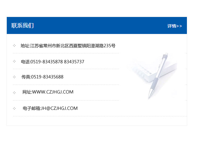傳真:0519-83435688    郵編:213135    網址:WWW.czjhgj_com.sqhbgc.com    電子郵箱:JH@czjhgj_com.sqhbgc.com